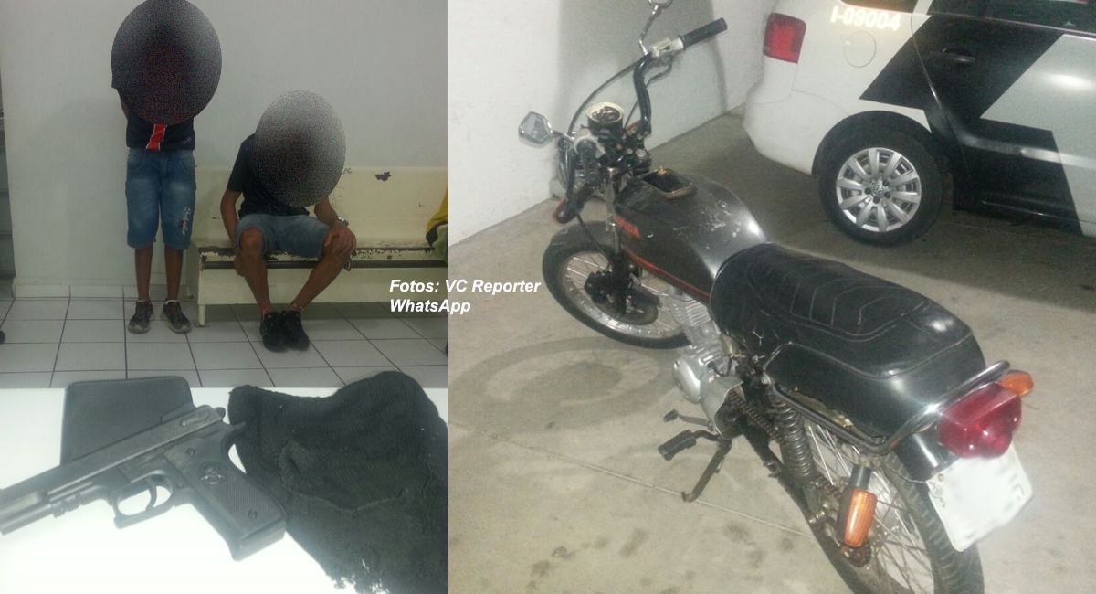 Com eles, os policiais apreenderam uma touca "ninja" e também uma pistola de brinquedo. O maior de idade pode estar envolvido no assalto a uma lanchonete, mas depende do reconhecimento da vítima. A motocicleta estava com a documentação em ordem, mas ao checar a numeração do motor, os policiais constataram que era produto de furto.