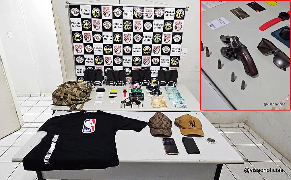No hotel onde estavam hospedados, a PM apreendeu grande quantidade em dinheiro, objetos que foram comprados com os cartões furtados e até um revólver (foto). Eles foram presos em flagrante e permanecem à disposição da justiça.