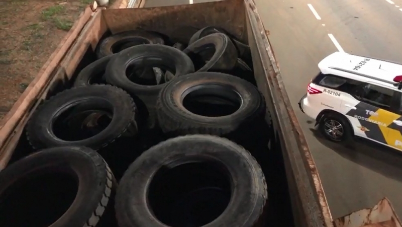 Segundo a Polícia Rodoviária, um caminhão foi parado para verificação e os policiais encontraram dezenas de pneus, eletrônicos, bebidas alcoólicas, produtos para cabelo, relógios, perfumes e duas armas de airsoft, todos sem nota fiscal.
