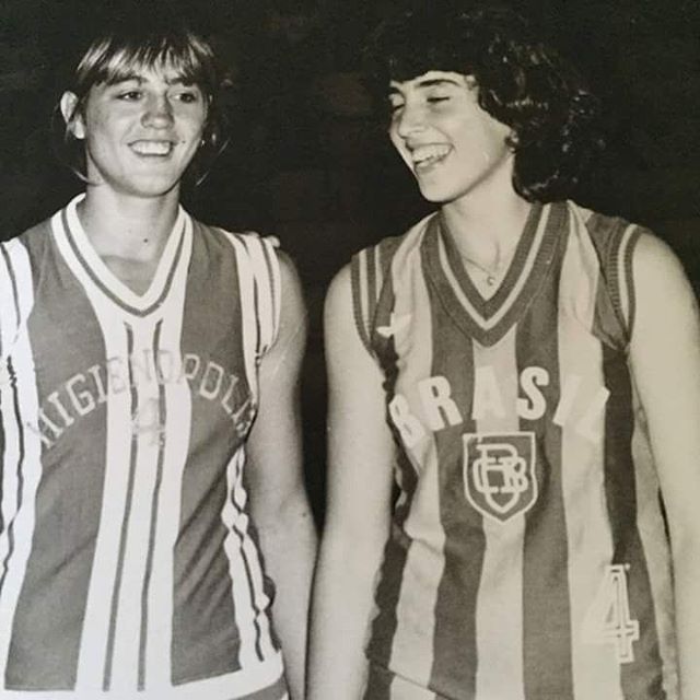 Em sua página no Instagram, a ex-jogadora compartilhou uma foto antiga, em que aparece de maiô ao lado da amiga e companheira de quadra Magic Paula.