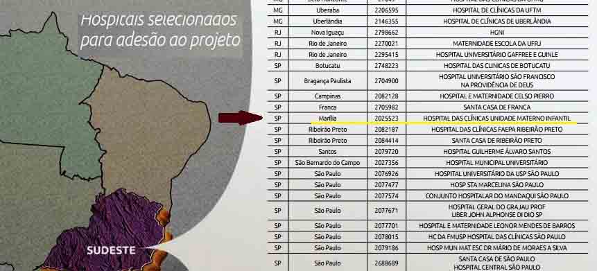 O Hospital Materno Infantil de Marília passou a integrar a rede de hospitais universitários no Projeto Apice On (Aprimoramento e Inovação no Cuidado e Ensino Obstétrico e Neonatologia) e que propõe a qualificação da atenção obstétrica neonatal em 95 hospitais de ensino, universitários e que atuam como unidade auxiliar de ensino no âmbito da Rede Cegonha.