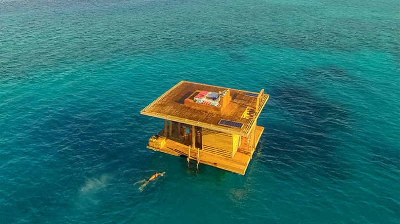 No The Underwater Room, isso é possível! O quarto submerso, onde hóspedes vivenciam a fantástica experiência de dormir entre espécies marinhas, é a maior atração do hotel The Manta Resort, no litoral da Tanzânia.