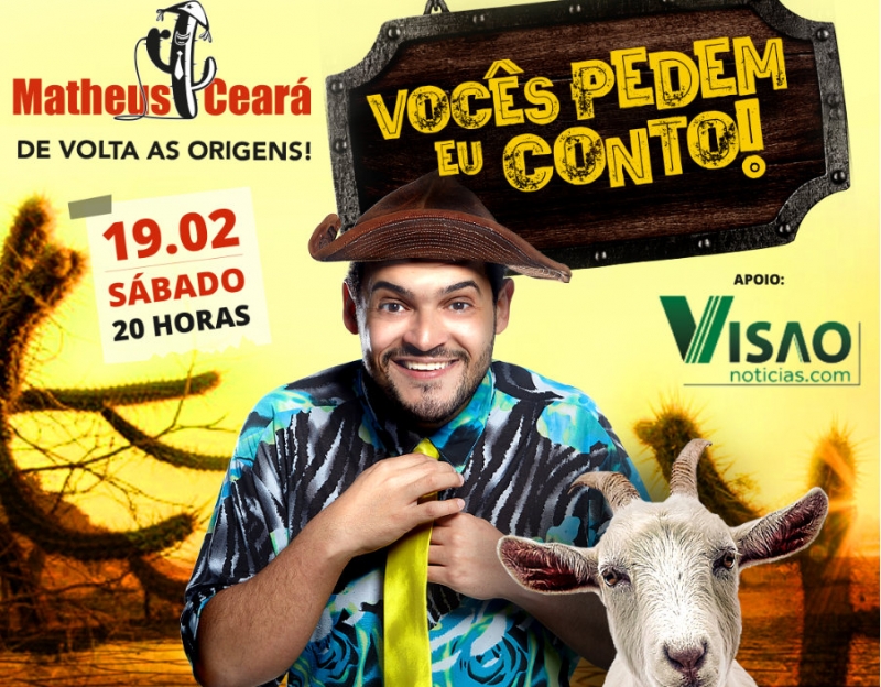 Situações como brigas de casais, traições e até mesmo situações comuns do cotidiano estão no show “Vocês Pedem e Eu Conto”, do humorista Matheus Martone, o Matheus Ceará, que estará em cartaz neste sábado dia 19 de fevereiro, às 20h, no Teatro Municipal de Marília. A apresentação tem apoio cultural do portal Visão Notícias.
