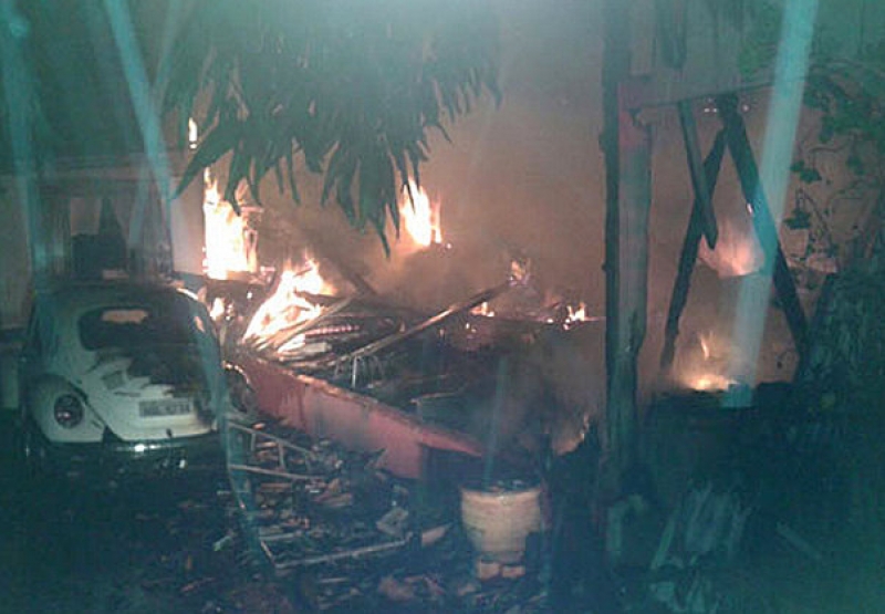 De acordo com o boletim da PM, o incêndio foi de grandes proporções e o fogo se alastrou rapidamente devido a casa ser parte de madeira, material de fácil combustão. Ainda conforme o boletim de ocorrência, César foi encontrado no banheiro com ferimentos graves.