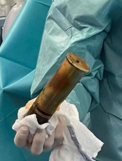 Após algumas horas na sala de cirurgia, os especialistas conseguiram remover o objeto, que tinha cerca de 20cm de comprimento e 5cm de largura.