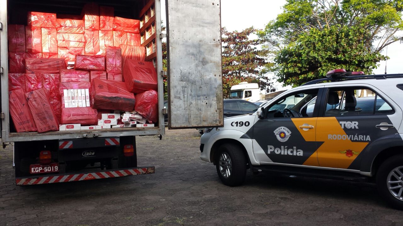 CONTRABANDO - Já em Marília, também na rodovia SP-294, a Polícia Rodoviária Estadual apreendeu um contrabando de aproximadamente 165.000 maços de cigarros do Paraguai, que estavam sendo transportados num caminhão, placas de Londrina.
