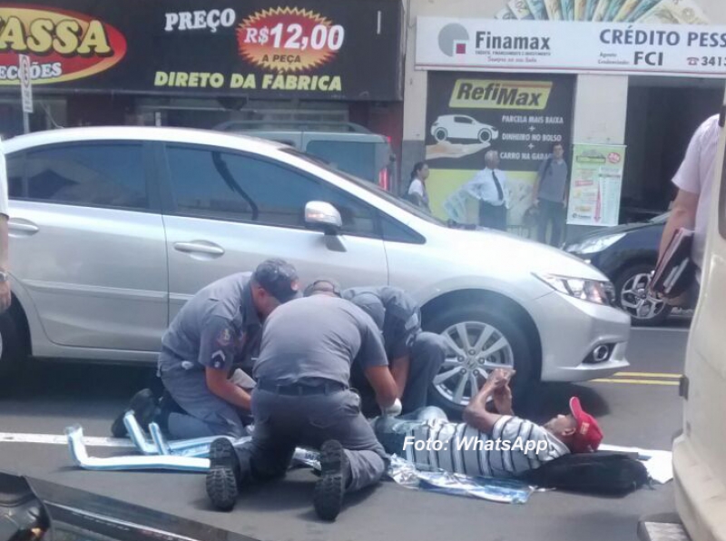 Um idoso, aparentando cerca de 65 anos, foi atropelado há pouco na avenida Sampaio Vidal, bem no centro da cidade. A vítima teve ferimentos nas pernas e foi socorrida por uma unidade Resgate do Corpo de Bombeiros.