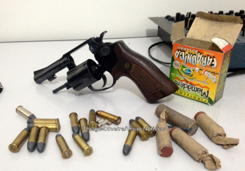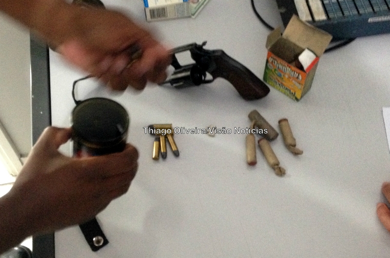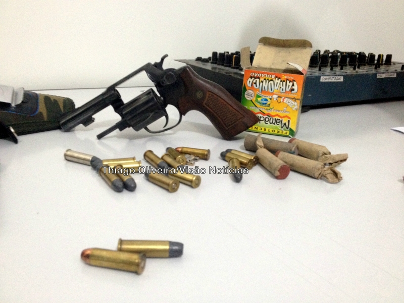 Com a chegada da viatura, o idoso se acalmou e entregou a arma aos policiais. O revólver Taurus com capacidade para cinco disparos estava municiado, e em busca no interior da residência, uma caixa de relógio com mais 26 munições em seu interior foi encontrada.