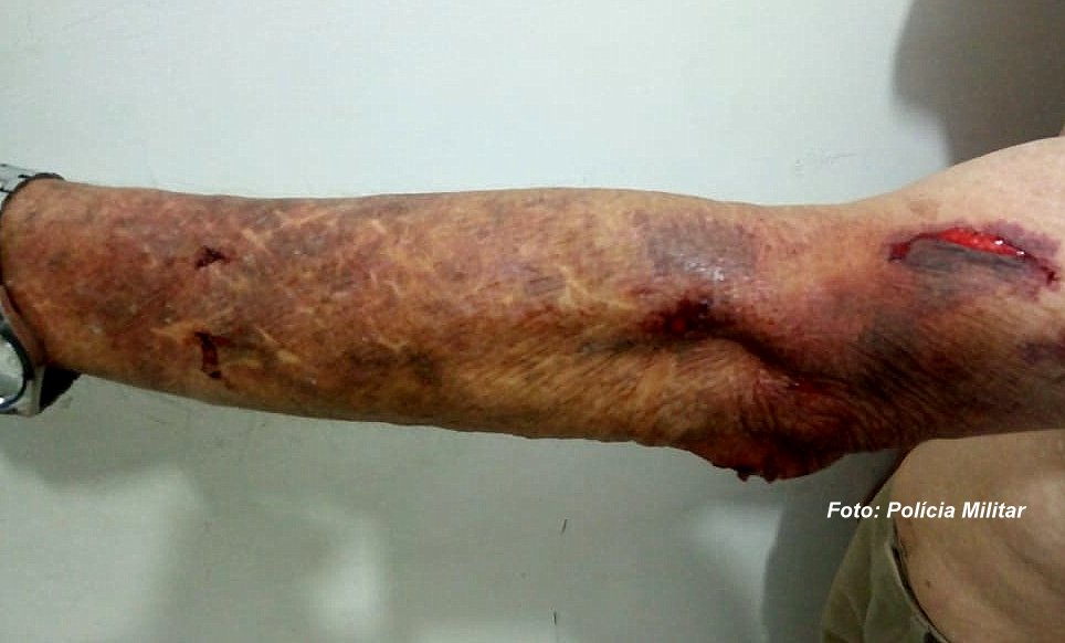 A vítima estava com ferimentos na face e nos braços, além das roupas coberta de sangue.