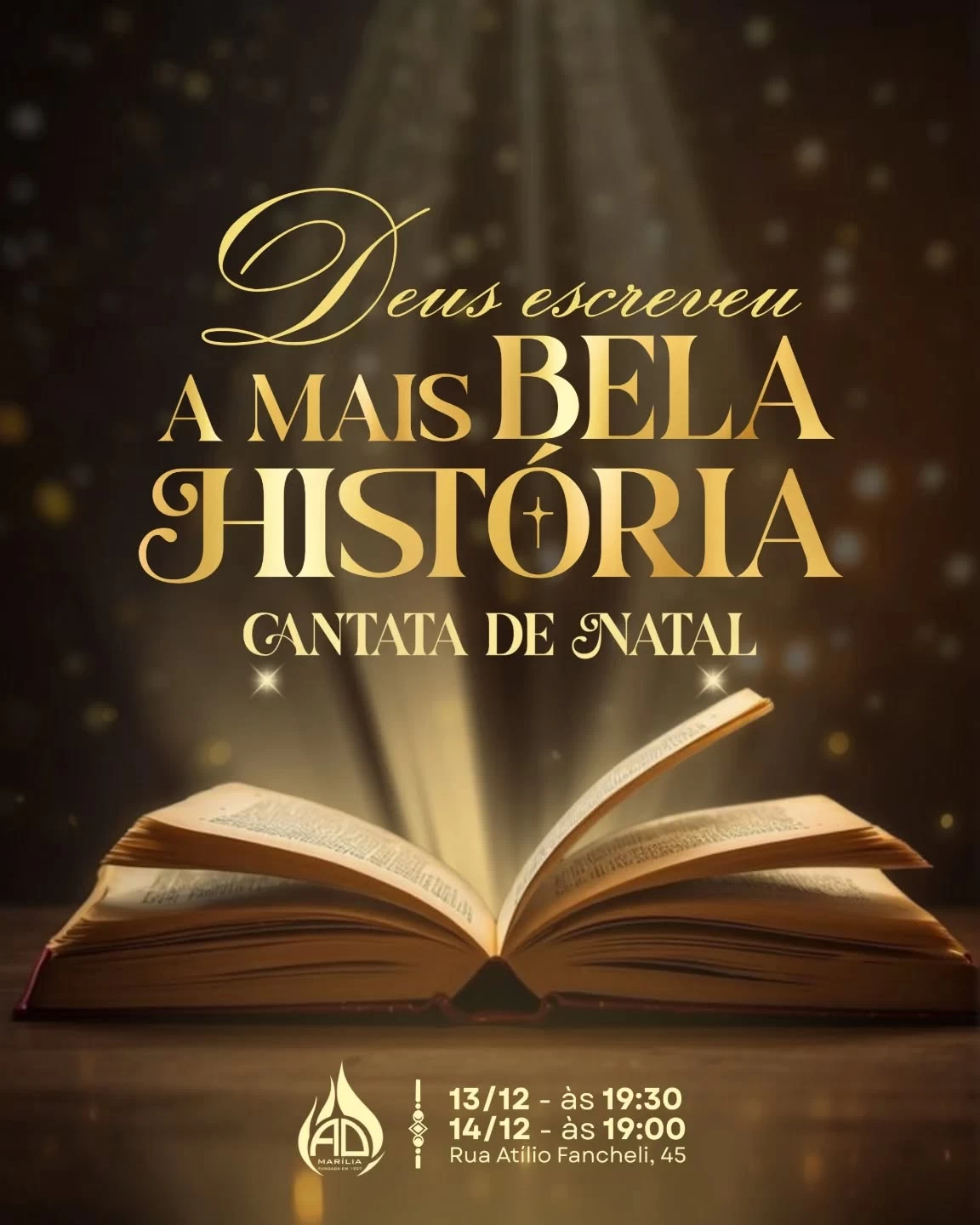 Mantendo a tradição e contando com a participação da Orquestra e Coral da Igreja, a Assembleia de Deus realiza neste sábado e domingo, em Marília, a Cantata de Natal "Deus escreveu a mais Bela História".