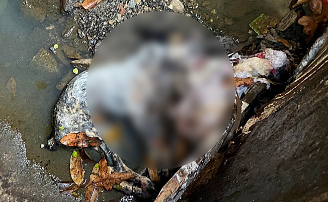 No vídeo, confira o momento em que o tutor joga o animal já morto dentro do bueiro: