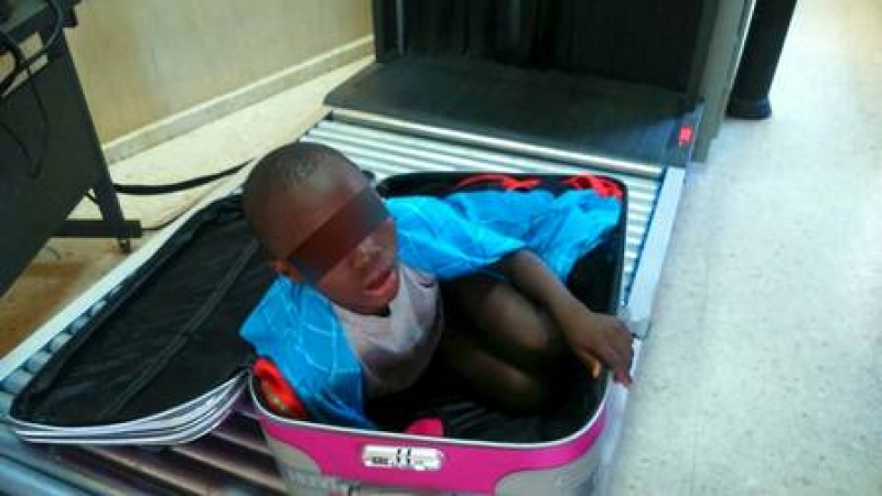 A foto foi tirada por serviços de imigração em Ceuta, que resolveram checar a mala de uma mulher de 19 anos que parecia apreensiva ao passar pelos controles. De acordo com a polícia, a criança não conhece a mulher, que serviu apenas de "carregadora".