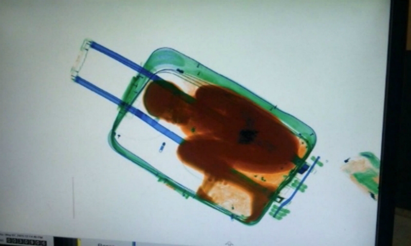 As autoridades espanholas divulgaram nesta sexta-feira (8) a foto de um raio-x que mostra uma criança de 8 anos escondida dentro de uma mala. De acordo com a Defesa Civil, trata-se de uma criança da Costa do Marfim, identificada como Abou, que tentava entrar na Europa para encontrar sua mãe, que vive na Espanha.