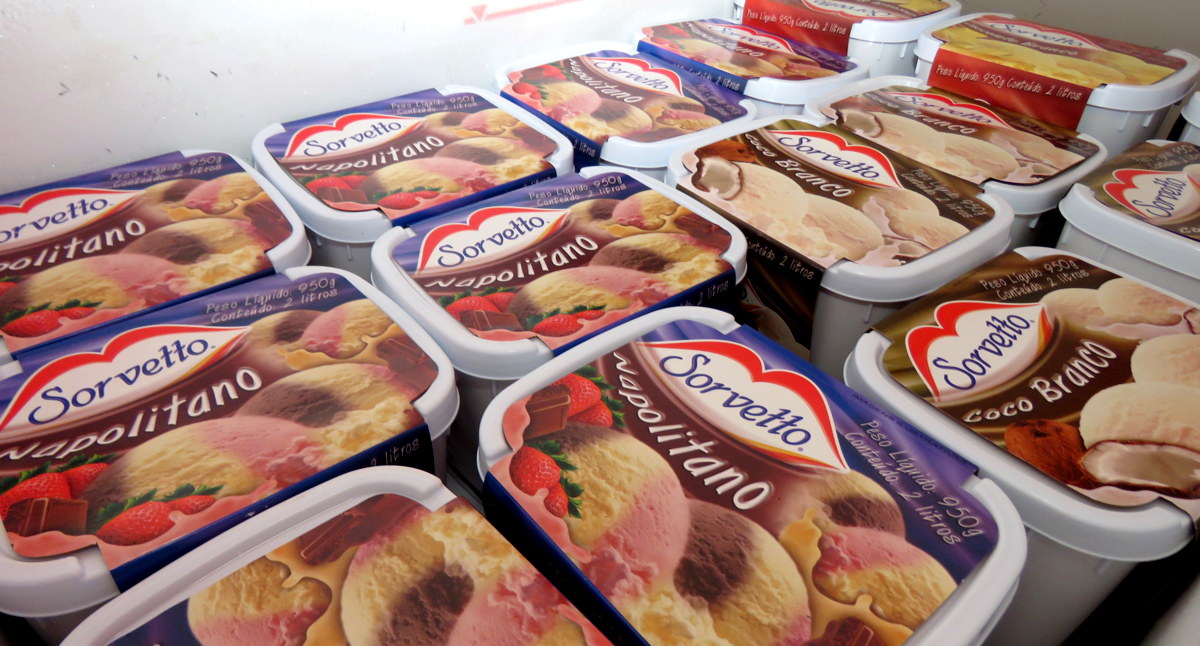 Entre as linhas de produtos, a Sorvetto possui os potes de 2 litros, com diversos sabores.
