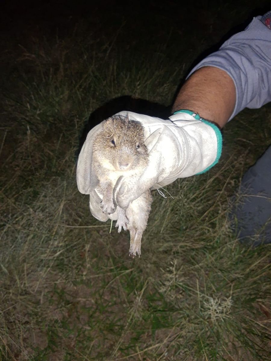 Durante os trabalhos de extinção a equipe percebeu uma movimentação em meio a vegetação e ao verificar localizou uma família de Cutias que estava no meio das chamas. Os animais foram salvos e soltos em uma área de preservação permanente.