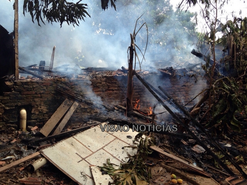 O barraco, que era construído com restos de madeira, tijolos e latão foi destruído pelas chamas.