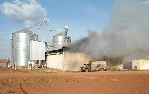 Incendio ocorreu em Bastos e silo desabou com toneladas de ração