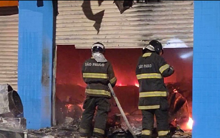 Uma das preocupações das equipes dos Bombeiros foi evitar que o incêndio se alastrasse para outros imóveis vizinhos, inclusive outras lojas de empresas famosas.