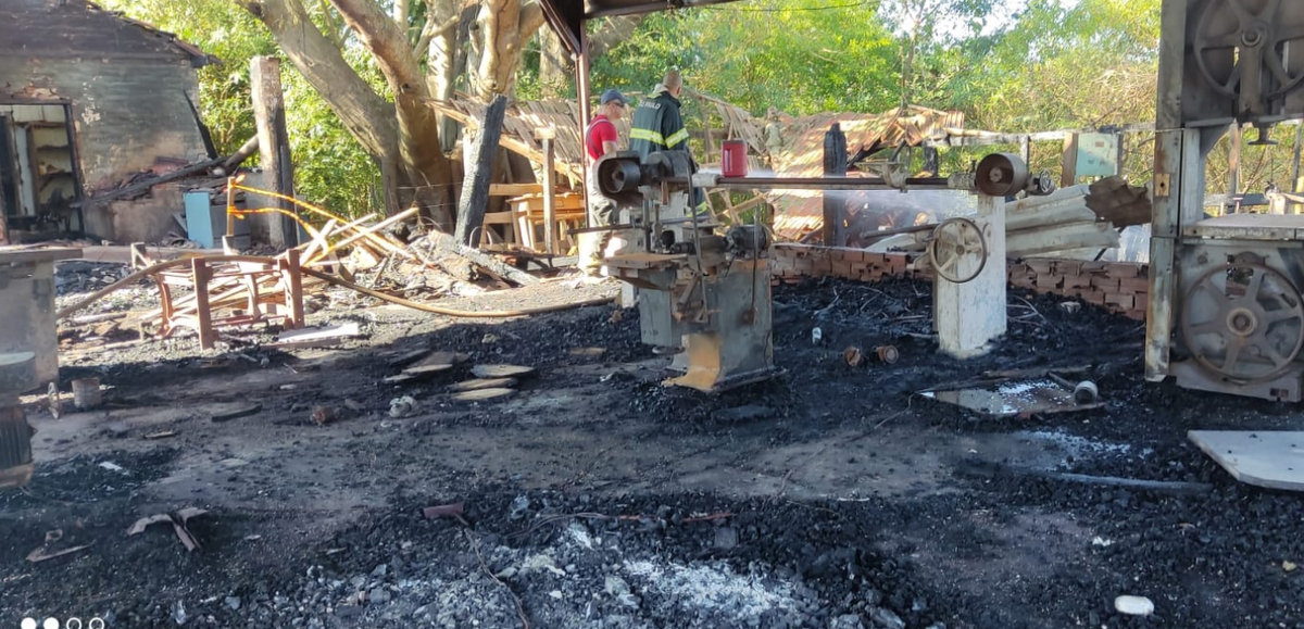 No total, foram destruídos cerca de 600 metros quadrados de um total de 2 mil metros da madeireira.