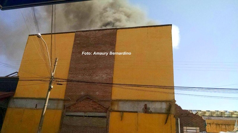 Fogo foi no antigo cinema que está sendo desmontado. Bombeiros alertam para revestimentos inflamáveis