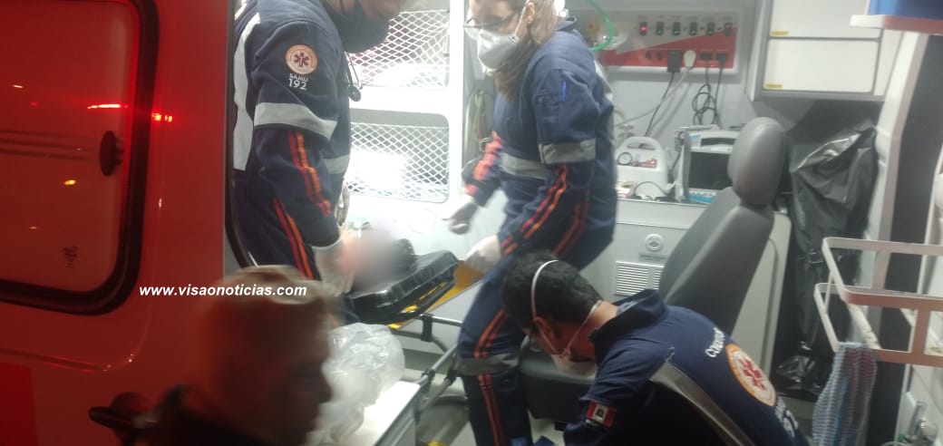 Uma das vítimas, com intoxicação, é socorrida pelas equipes de salvamento. Operação mobilizou Bombeiros e SAMU.