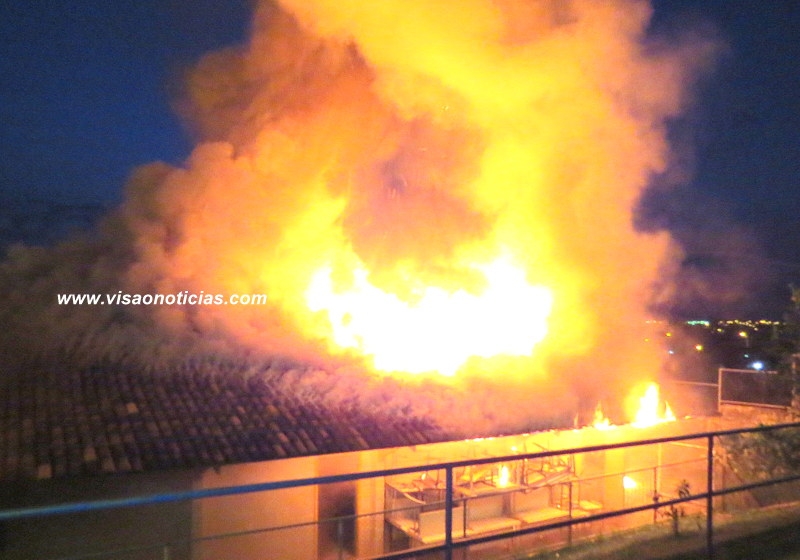 Fogo se alastrou rapidamente pelas duas salas. Neste momento, os Bombeiros ainda não chegaram ao local.