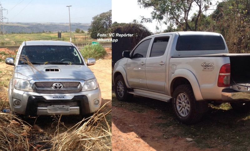 A caminhonete Hilux roubada após um sequestro relâmpago no começo desta madrugada em Marília foi localizada há pouco às margens da rodovia SP-333, sentido Assis. O veículo estava com as portas abertas e no interior foram encontradas roupas pretas.