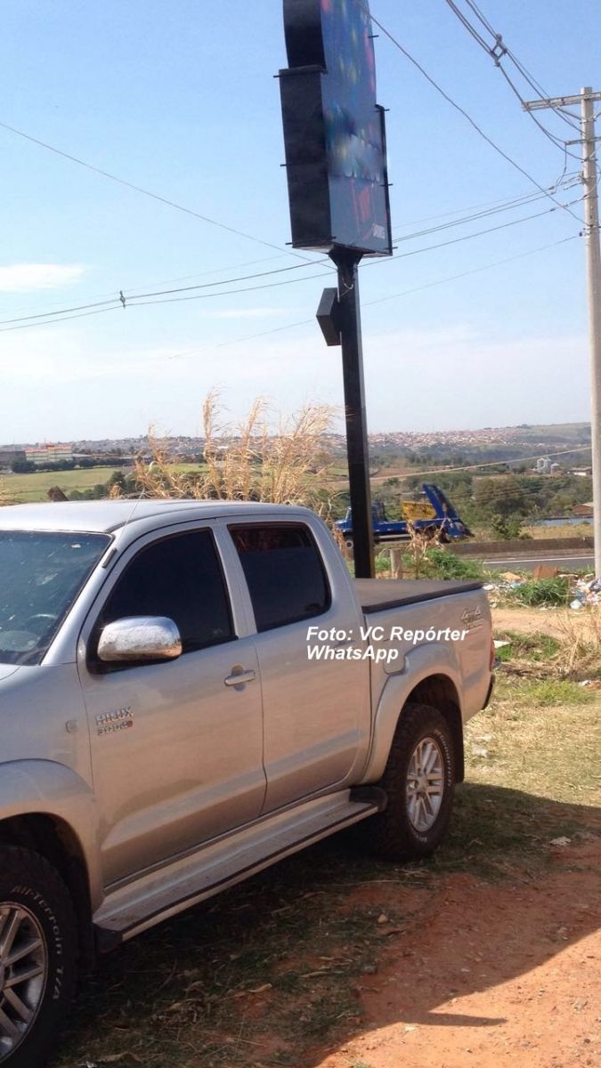 A Hilux estava abandonada às margens da SP-333.