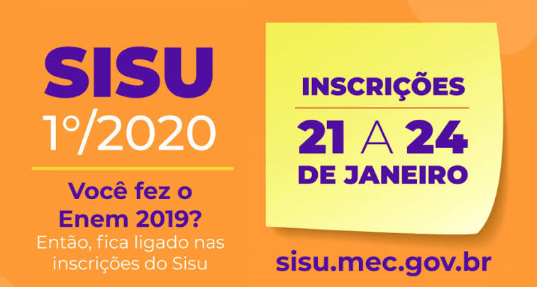 A partir do dia 21 de janeiro estarão abertas as inscrições para o Sistema de Seleção Unificada (Sisu), do primeiro semestre de 2020. As inscrições ficarão disponíveis até às 23h59 do dia 24 de janeiro. Todo procedimento é gratuito e deve ser realizado na página do Sisu.