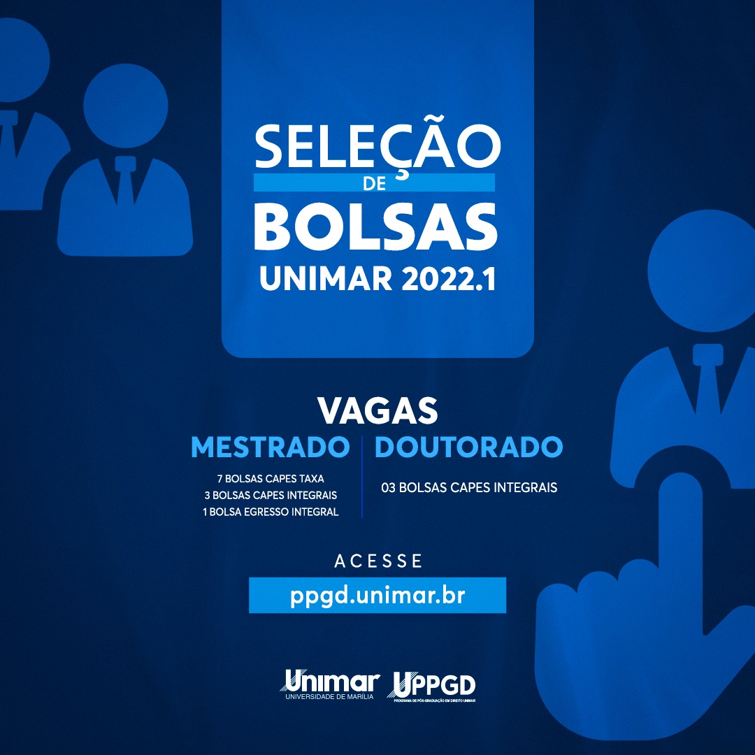 As inscrições para o processo seletivo do primeiro semestre do Programa de Pós-Graduação em Direito (PPGD) da Universidade de Marília (Unimar) terminam nesta quarta-feira (dia 16). O processo seletivo será 100% on-line. Ao todo, são ofertadas 30 vagas, sendo 20 para o mestrado e 10 para o doutorado. Confira todas as informações sobre o processo seletivo através do edital.