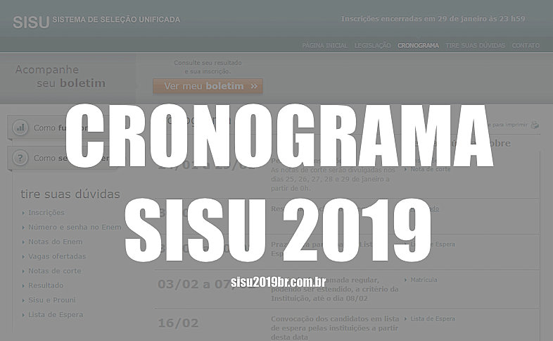 As inscrições do Sistema de Seleção Unificada (Sisu) 2019 poderão ser feitas de 22 a 25 de janeiro, conforme edital divulgado pelo Ministério da Educação (MEC). O programa oferece vagas em universidades públicas. O número total de vagas, bem como o número de instituições que participarão do programa ainda serão divulgados.