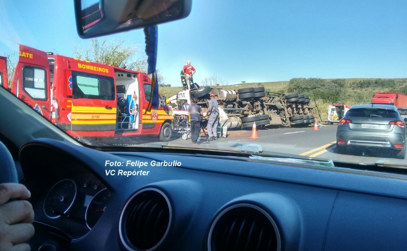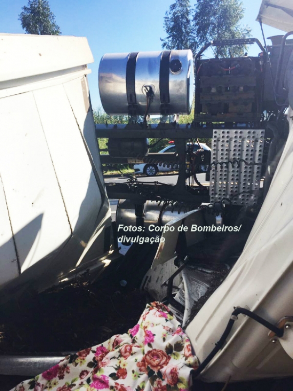 "Pelo pouco que conversei com o motorista que se mantinha calmo o mesmo perdeu o controle ao fazer a curva. Conversando com um rapaz que vinha um pouco a nossa frente ele disse que o caminhão estava bem devagar", acrescentou o internauta que pediu para não ter o nome divulgado.