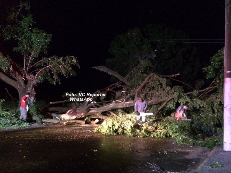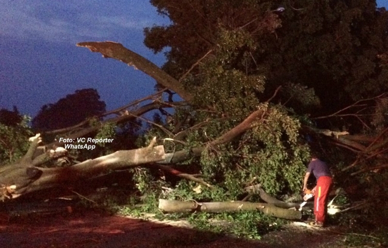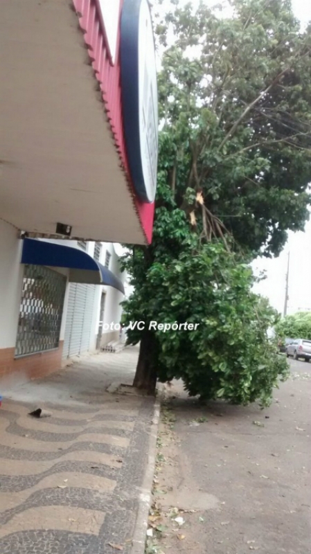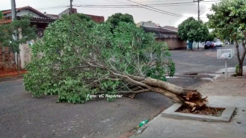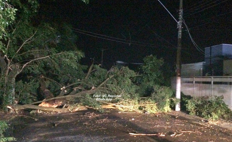 No bairro Maria Izabel diversas árvores de grande porte também não resistiram à força do vento. Resultado: a região sofre com a falta de energia.