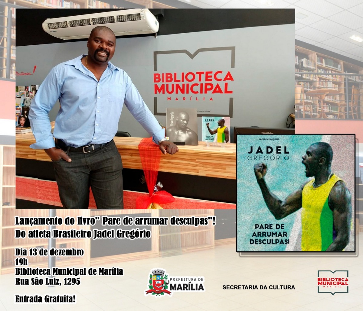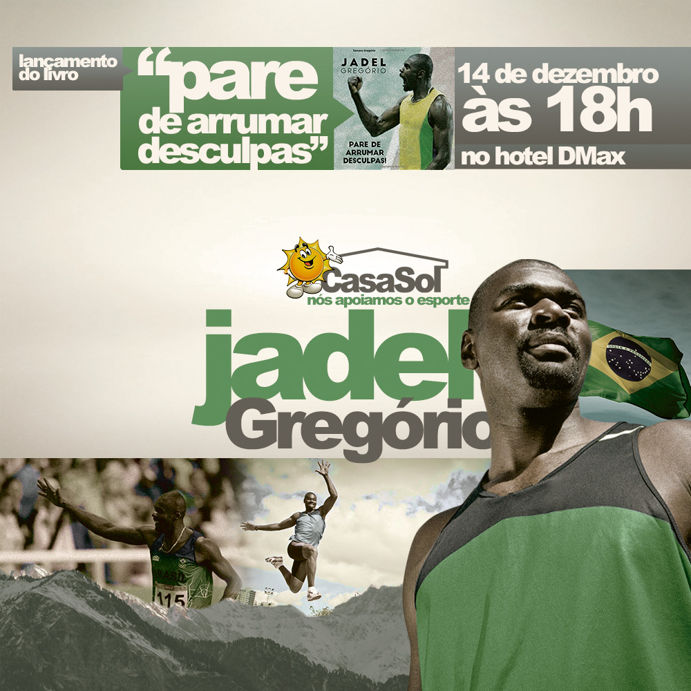Considerado um dos maiores nomes do atletismo brasileiro na modalidade de salto triplo, Jadel Gregório lançará nesta quinta-feira (13), seu livro “Pare de Arrumar Desculpas!”. O evento acontecerá a partir das 19h, com sessão de autógrafos na Biblioteca Municipal (Rua São Luiz, 1295).