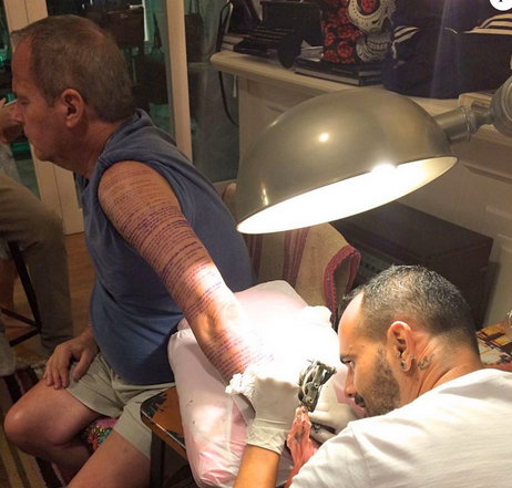 Jaime Monjardim deu o que falar ao publicar uma foto com o braço fechado por uma tatuagem nem sua conta no Instagram. Dessa vez o autor não fez em homenagem a família, como já fez, mas escolheu escrever os 31 versículos de Gênesis I, da Bíblia, no braço esquerdo.