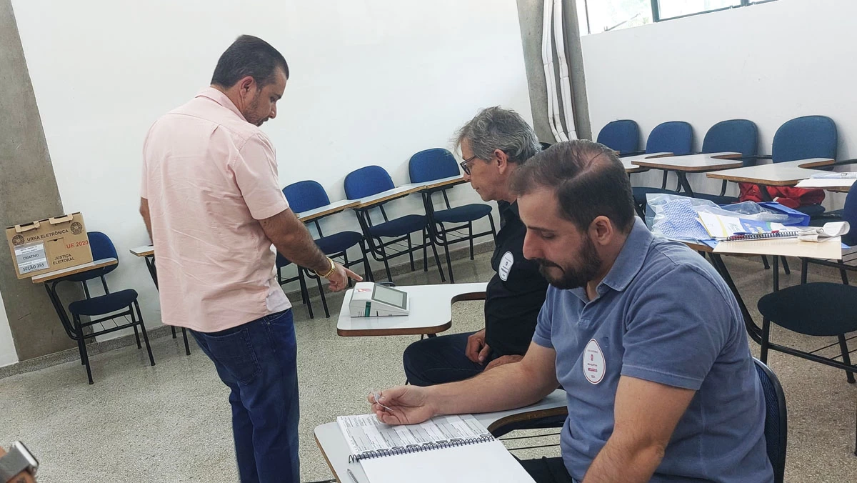 Acompanhado da esposa Victória e de assessores, o candidato a prefeito João Pinheiro votou na escola Criativo, na zona leste da cidade.