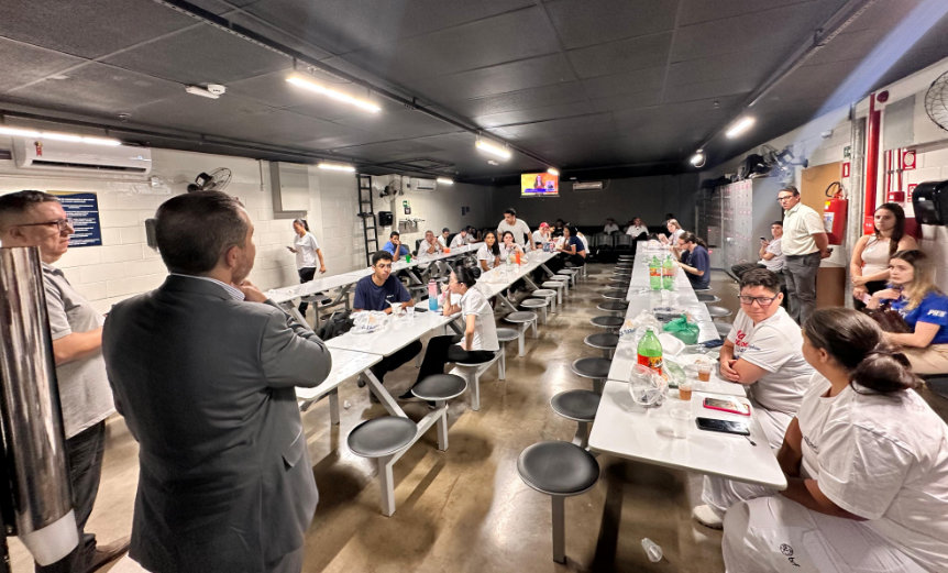 Logo pela manhã, Pinheiro visitou a empresa Comasa, onde se apresentou aos colaboradores e discutiu temas importantes para o setor.