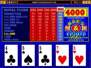 Vídeo poker: é uma boa altenativa para jogadores que não gostam de ficar encarando o dealer ou outros jogadores. É bem simples: selecione quanto você quer apostar e clique em “draw”. Nesse ponto, cinco cartas serão pegas e você tem a escolha de ficar com elas ou não. Se você fizer essa decisão, clique no outro botão e isso fará as cartas não desejadas serem trocadas.