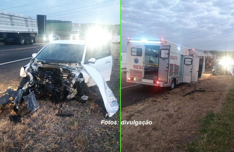 duas carretas que estavam numa ultrapassagem e fez com que a vítima tivesse de jogar o carro para o acostamento e depois batendo num dos pesados veículos. Ela sofreu ferimentos leves, mas o carro ficou com a frente destruída.