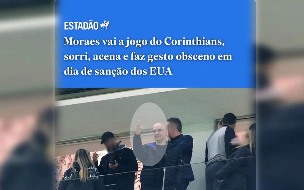 A imagem havia sido capturada em 30 de julho, na Neo Química Arena, em meio a uma partida entre o Corinthians - time pelo qual o magistrado torce - e o Palmeiras. Moraes estava no camarote do estádio quando, em dado momento, gesticulou com o dedo médio em direção ao campo.
