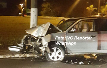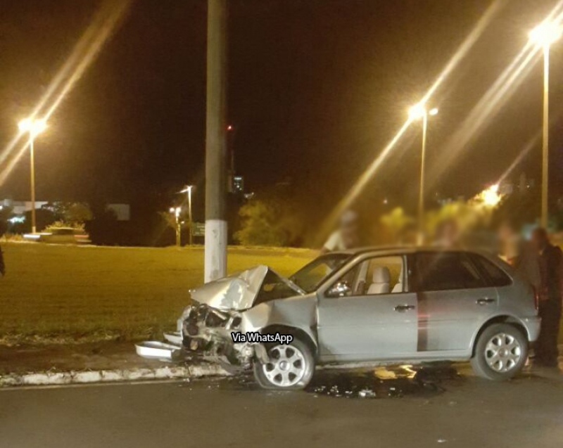 rotatória localizada nas proximidades do Campus Universitário um motorista que estaria completamente embriagado perdeu o controle de seu veículo e bateu violentamente contra um poste.