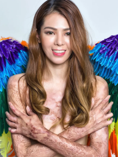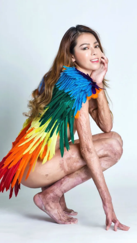 Aos 31 anos, Lia atualmente usa seu corpo para inspirar outras mulheres se amarem como são, depois de passar por 21 cirurgias em três anos para reduzir os danos causados em 91% da sua pele."Nos últimos anos, eu costumava usar várias roupas para esconder as minhas cicatrizes", disse ela.