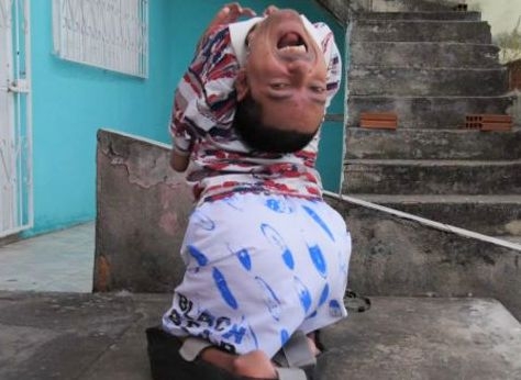 Ele nasceu com artrogripose, que faz com que seus ossos se fundam e ganhem um formato curvo e contraído.