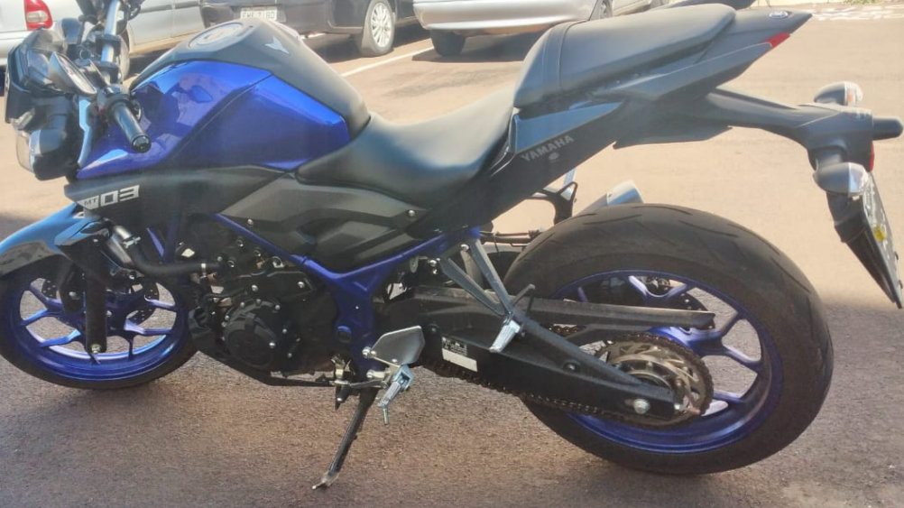 A moto roubada é uma Yamaha MT-03 azul, placa de Marília, EQU-4470. Quem tiver informações que leve ao paradeiro da motocicleta comunique a Polícia Militar através do 190.