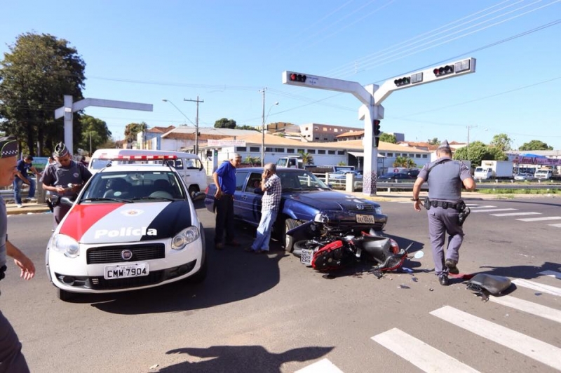Uma motociclista teve parte da perna decepada após o forte impacto de um acidente provocado pelo condutor de um carro que não respeitou a sinalização de trânsito e atingiu a vítima no início da manhã desta quarta-feira, no centro de Lins (64 quilômetros de Marília).