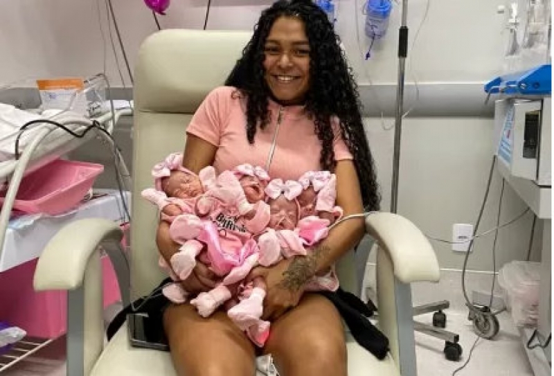 A gravidez não planejada pegou de surpresa Alexsandra de Souza da Silva, de 22 anos. O susto foi ainda maior, quando ela descobriu que não seria mãe de uma, mas de quatro meninas. O nascimento de Ester, Sophia, Laura e Giovanna é considerado um caso raro pela equipe médica e acontece um a cada 700 mil e 1 milhão de gestações.