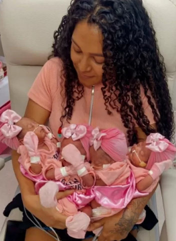 Mesmo separada do pai das quadrigêmeas, ela vem recebendo apoio do ex, da avó das meninas e das amigas.