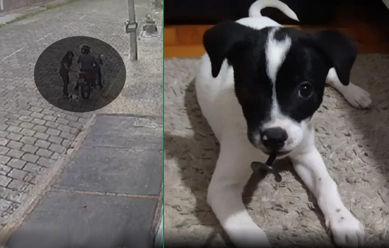 Após um mês da adoção, a acusada decidiu devolver o animalzinho. Imagens de câmera de segurança mostraram quando a mulher na garupa de uma moto, que estaciona em frente à residência.