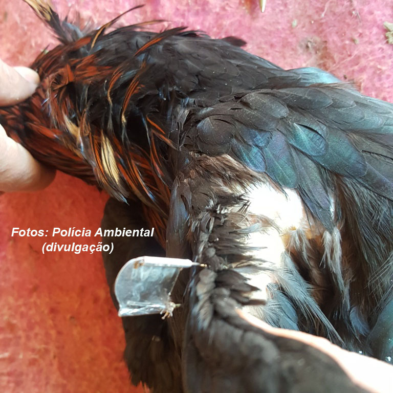 Os galos foram encontrados mutilados, segundo a Polícia Ambiental.