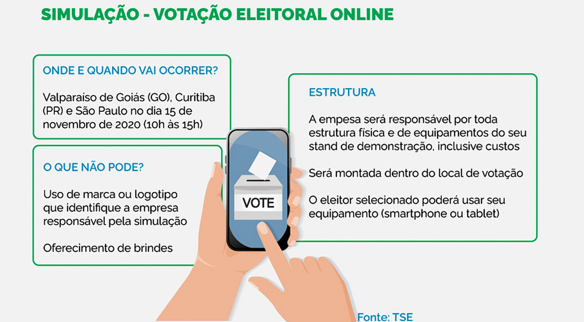 Por isso mesmo é que uma nova forma de realizar a votação vai entrar em fase de testes – não para as eleições deste ano; mas para agregar conhecimentos e experiências para criar uma plataforma segura e capaz de ampliar o acesso da população à democracia pelo voto. As cidades de Valparaíso de Goiás (GO), Curitiba (PR) e São Paulo (SP) foram selecionadas para fazer parte de um projeto de simulação de votação on-line, via celular ou tablet.